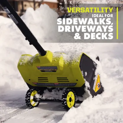 Introducing the RYOBI 40V 12 in. Wheeled Snow Shovel. This snow shovel is capable of clearing a 12 in. path and snow 6 in. deep, throwing snow up to 25 ft. away. The 2-speed trigger allows you to power through piles of snow or extends runtime. The shovel is built with a 2-wheel design, reducing user fatigue while in use. This snow shovel is compact and lightweight so you can work as long as needed without fatigue and can store the unit easily when the job is done. The RYOBI 40V 12" Dedicated Snow Shovel is backed by a 5-year limited warranty. Battery and charger not included.
