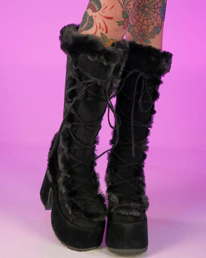 5" (12.7cm) Platform Goth Punk Gogo Faux Fur Lining and Upper Detail Knee Boot, Full Inner Side Zipper