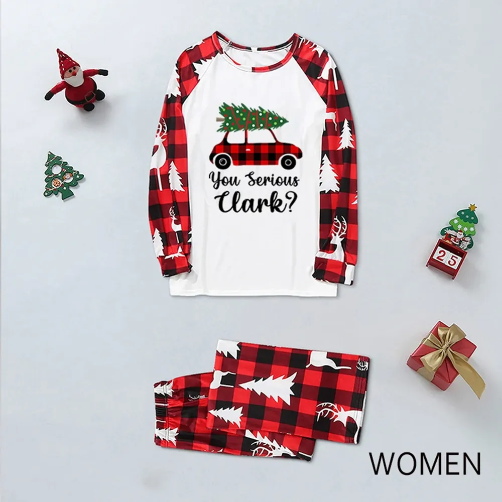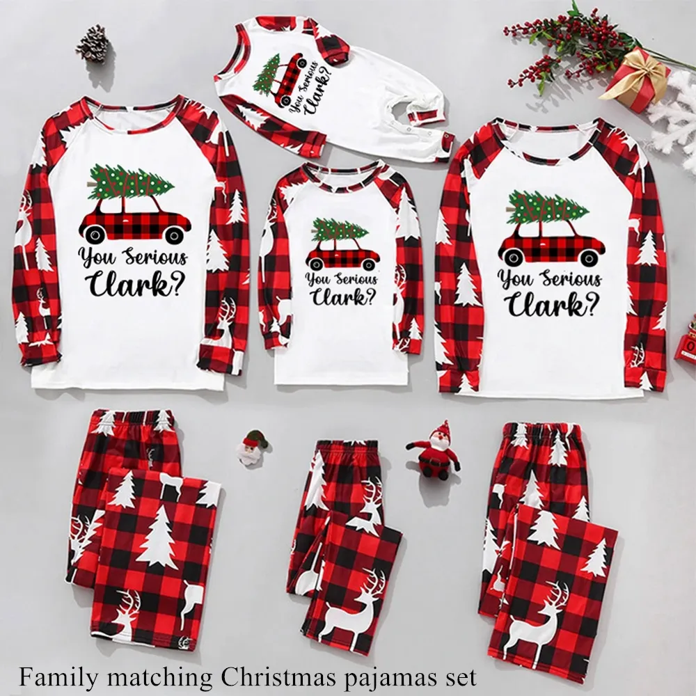 Family matching Christmas pajamas set with truck print
